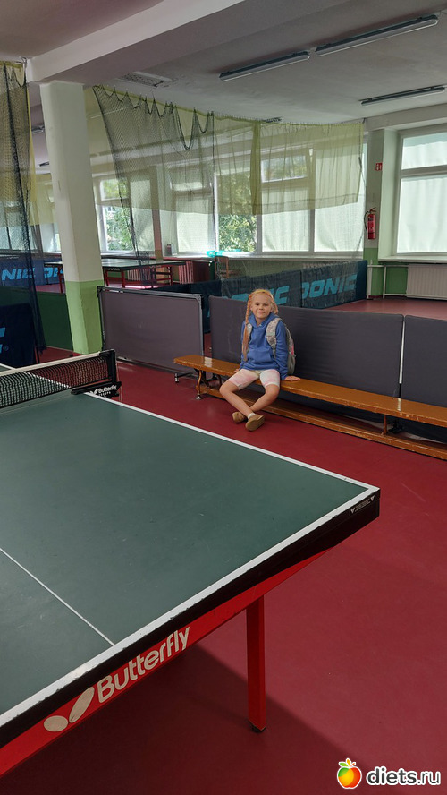 В конце августа записали ее в спортшколу, на настольный теннис. Занятия начались 4-го сентября. Думали, с братом будет ходить, но у него стрельба совсем в другое время. Приходится бегать с коляской, провожать