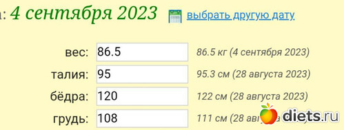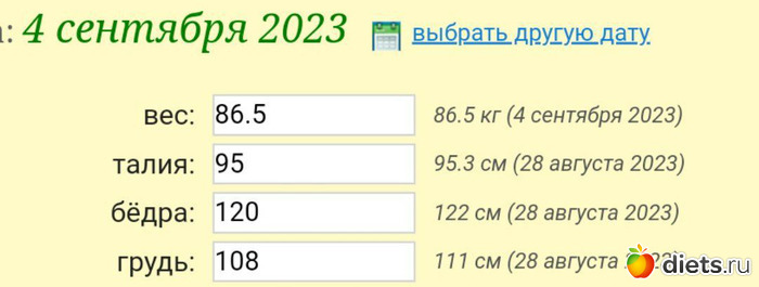 Diets.ru День 15. -400гр. (86.5). Прогресс по объёмам.