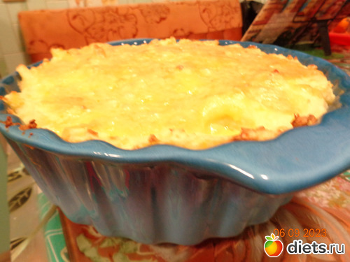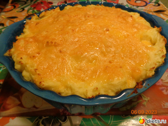 12. Посыпьте пюре с сосисками оставшимся натёртым сыром.