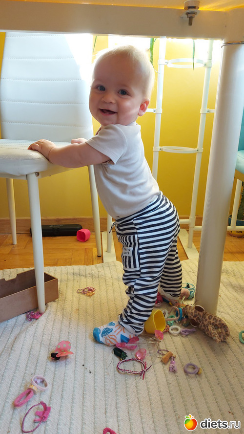 С другой стороны, на работе я сидела без движения часами. Сейчас все время на ногах. Ну как на ногах - относительно. Вроде сижу вяжу весь день. Малыш ходит по стенке из комнаты в комнату и рушит все на своем пути