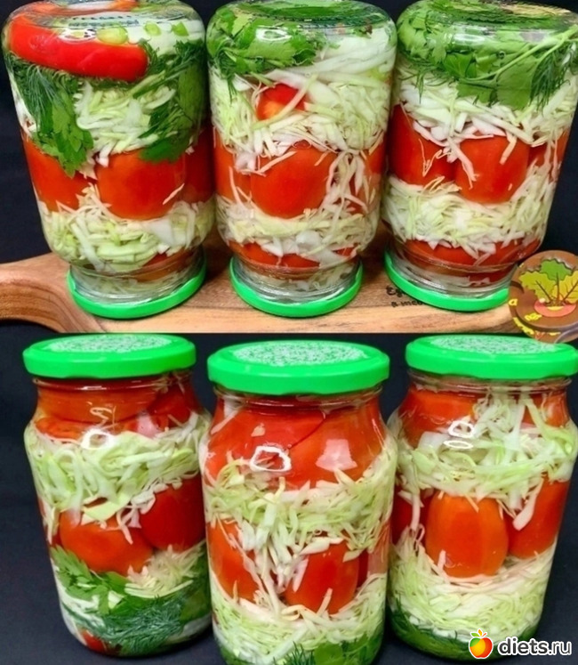Такие помидоры в нашей семье готовят уже очень давно, из года в год закатываем минимум по 10 банок. Помидоры получаются упругие, сочные внутри, ароматные, а капуста хрустящая и невероятно вкусная! Зимой это настоящее объедение!