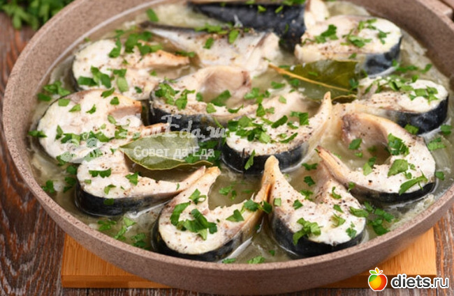 6. Готовую скумбрию посыпаем петрушкой и сразу подаем на стол. Рыба таким способом получается не только сочной, ароматной и вкусной, но и полезной. Мне нравится подавать ее с картофельным пюре.