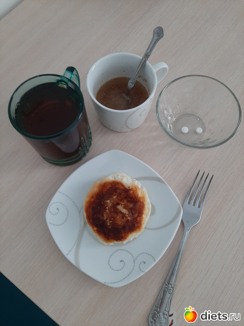 Мой ужин: сырник (83 гр) и черный чай без сахара.
