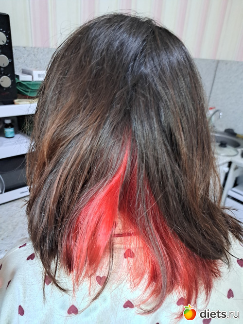 Покраска детёныша удалась, прям классно вышло)) Красная краска осталась и я решила себе тоже пару прядей покрасить. Ха-ха, блин