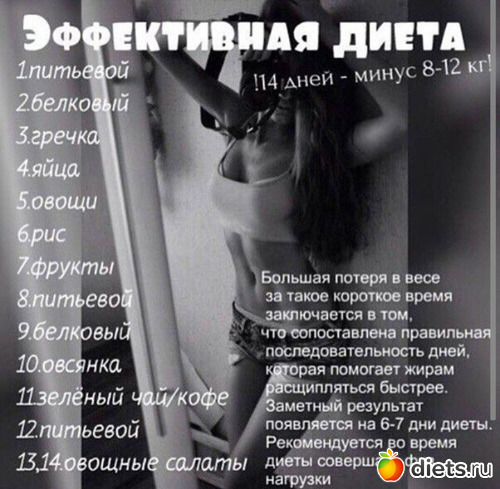 Вообщем позже к 12 часам я съела виноград примерно 100 г и ещё 4 котлеты из индейки и курицы... Наелась и легла спать, у меня эти два дня жутко болела поясница и вся спина и я вообще не могла ходить, прям скрутило меня всю... Мама намазал меня мазью Диклофенак и вот на 3 день только всё прошло... Поэтому я никуда не выходила и тупо лежала и спала и ела... Даже не могла элементарно взвесить продукты, было не до этого... А дедушка вчера с утра съездил с сынулей и они прошли УЗИ, Слава Богу, там работал лифт и они прокатились с сынулей и вверх и вниз, вообщем всё сделали и приехали... Сегодня я уже аклималась и повезу сына с дедушкой вместе на машине... Вечером вчера я также поела салат сельдь под шубой 300 г примерно и съела ещё две сырокопченых колбаски на 100 г... Вообщем всё, что нельзя и ккаллорийно я ем, а то, что нужно есть я игнарирую и причем происходит это всё быстро и спонтанно, ну а потом уже поздно, только сожалею... Короче что тут ныть, снова вычитала ещё одну ДИЕТУ на 14 дней, она более щедящая чем предыдущая, вообщем буду пробовать!)Вот она: