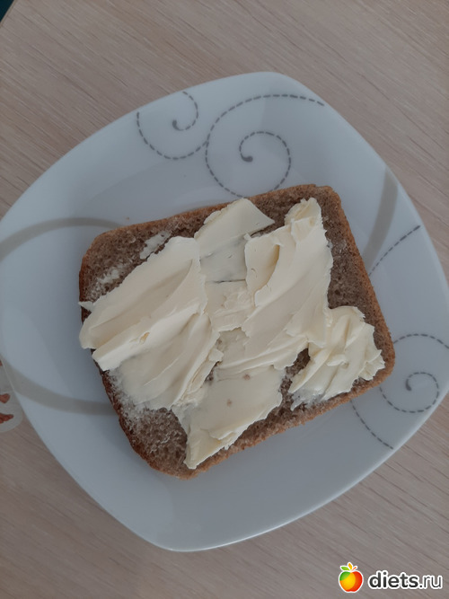 Мой обед: ёжик со свининой (89 гр), хлеб (23 гр) с маслом (10 гр) и черный чай без сахара.