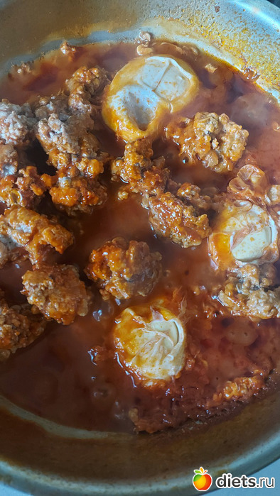Мини котлетки "по-мароккански" с яичницей в томатном соке