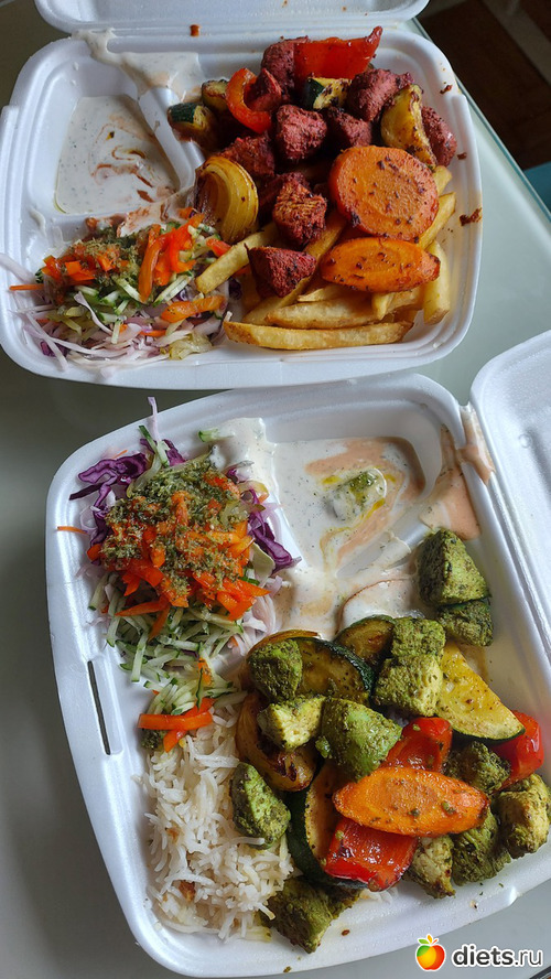 1 день муж работал из дома. Брали на вынос индийскую кухню. Названия заковыристые, забыла. Ему острую курицу с фри, мне чесночную с рисом