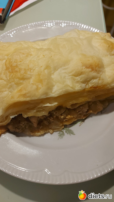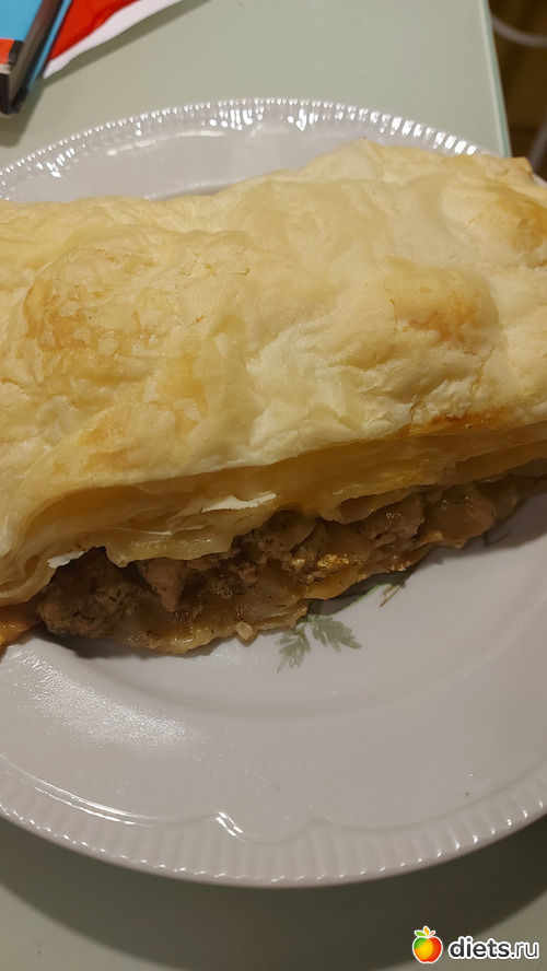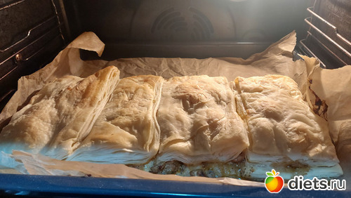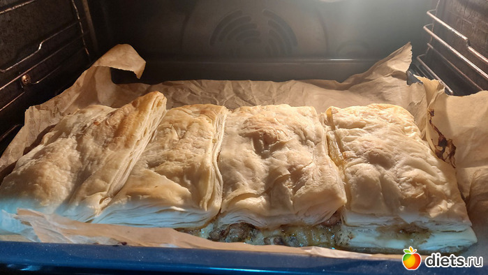Пирог из готового теста, начинка курфиле, сыр, сливки