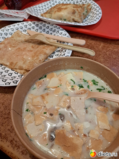 Дали почему-то два грибных супа, вместо одного, поэтому у меня был вкусный супчик с сухариками