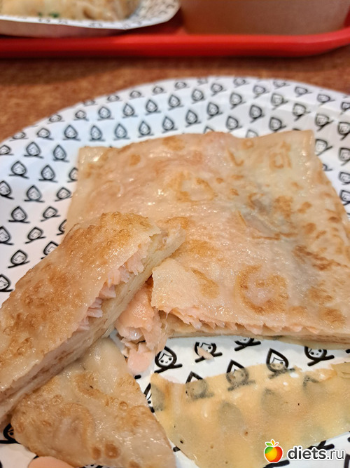 Обратно пешком пошли, по пути в Теремке пообедали. Я себе блин взяла и морс смородиновый