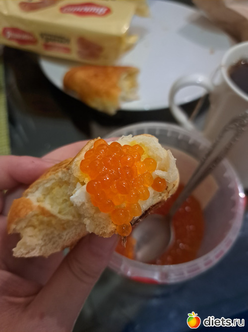 По дороге зашли в пекарню, я себе пирожок с рисом и яйцом взяла, в итоге ела его вместе с красной икрой