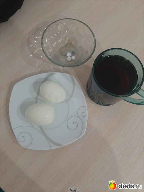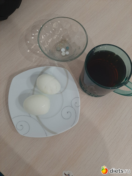 Мой завтрак: 2 вареных яйца и черный чай с 1 ложкой сахара.
