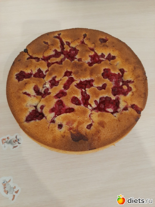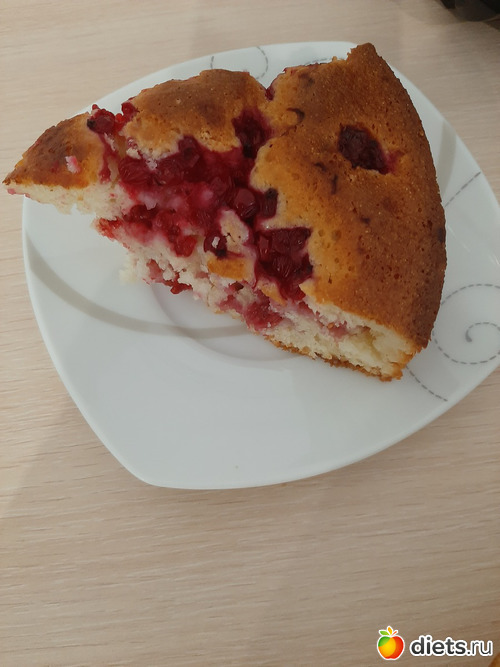 Мой ужин: манник с красной смородиной (115 гр) и черный чай с 1 ложкой сахара.