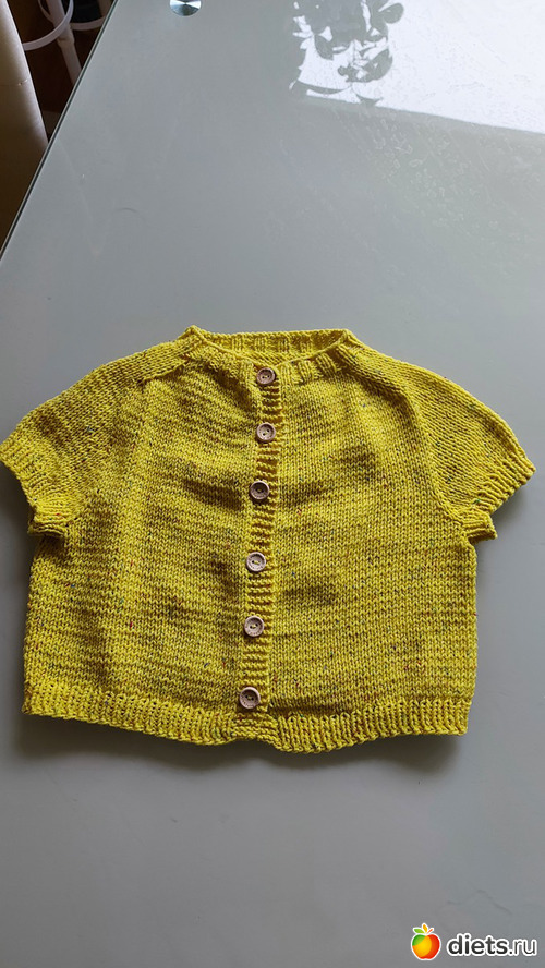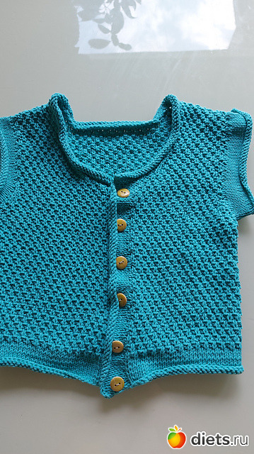 С коротим рукавом. Пряжа: 57% хлопок, 40% акрил, 3% полиэстр
