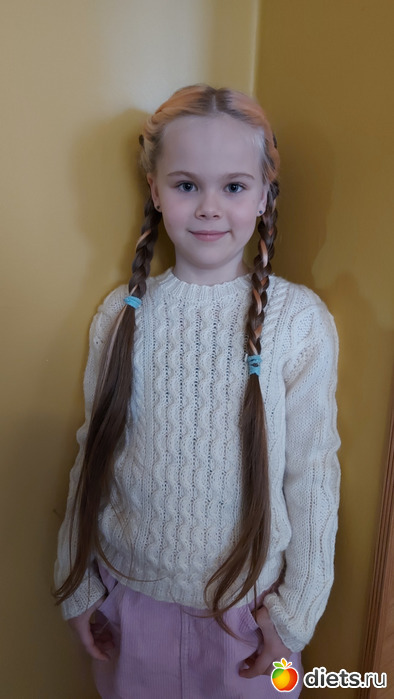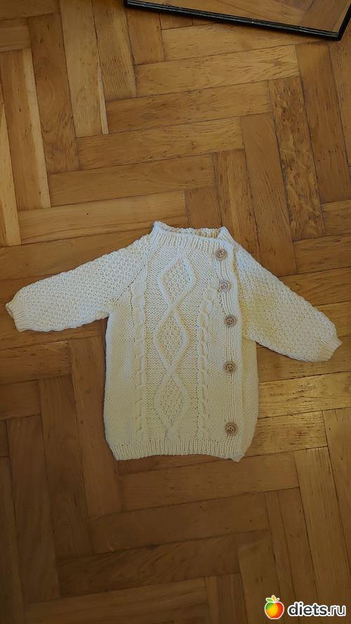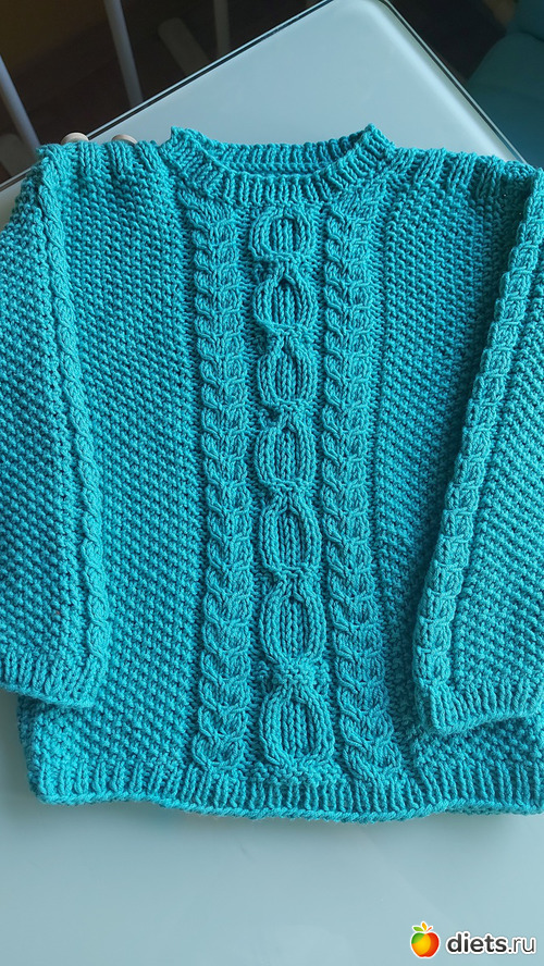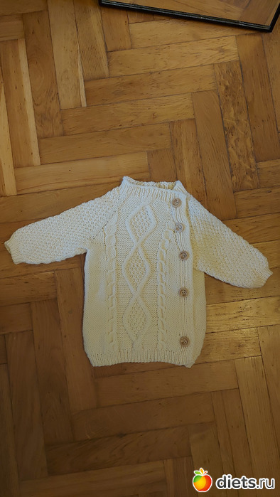 На зиму доче связала свитер в аранах из 100 % овечьей шерсти