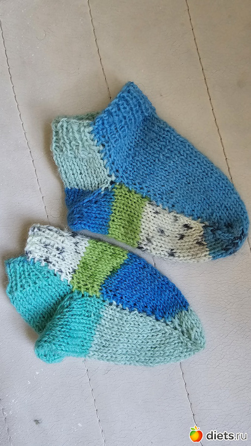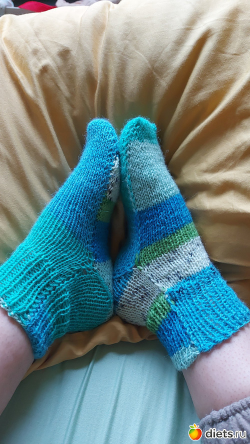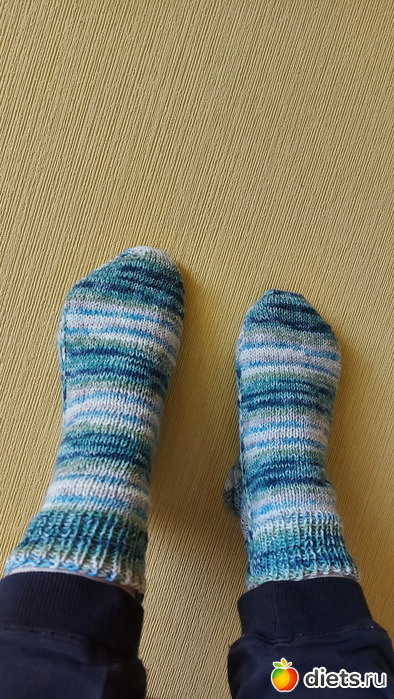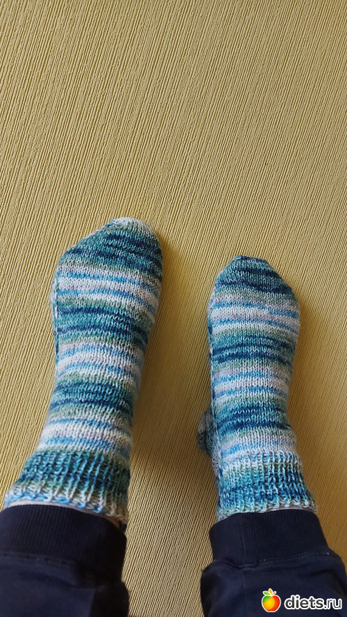 Еще носки, 75 % шерсть, 25 % полиамид. Они от одного мотка, такие разные, потому что в пряже длинные секции