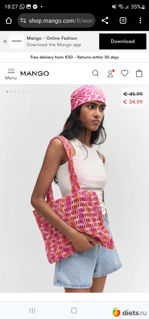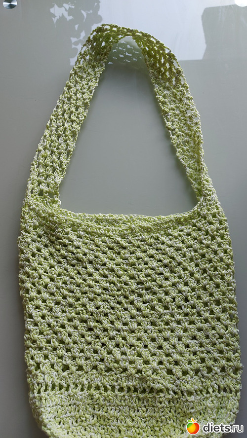 Хотелось еще повязать крючком. Решила связать авоську. Как раз у нас ввели плату за одноразовые полиэтиленовые пакетики в магазинах. Думала, буду в авоське покупки носить. Эти авоськи тоже были во всех магазинах, в Зара-Манго по 40-60 евро