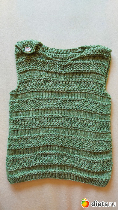После этого жилета я поняла, что нет смысла возиться с застежками в плечиках - в V-вырез прекрасно пролезает голова