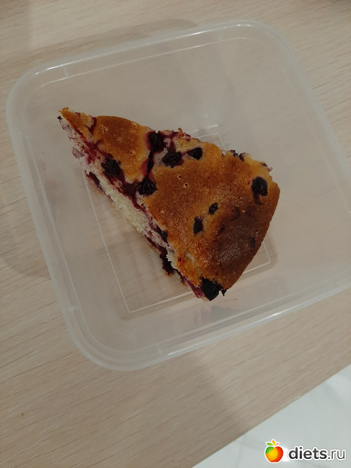 Мой полдник: манник с черной смородиной (95 гр) и черный чай без сахара.