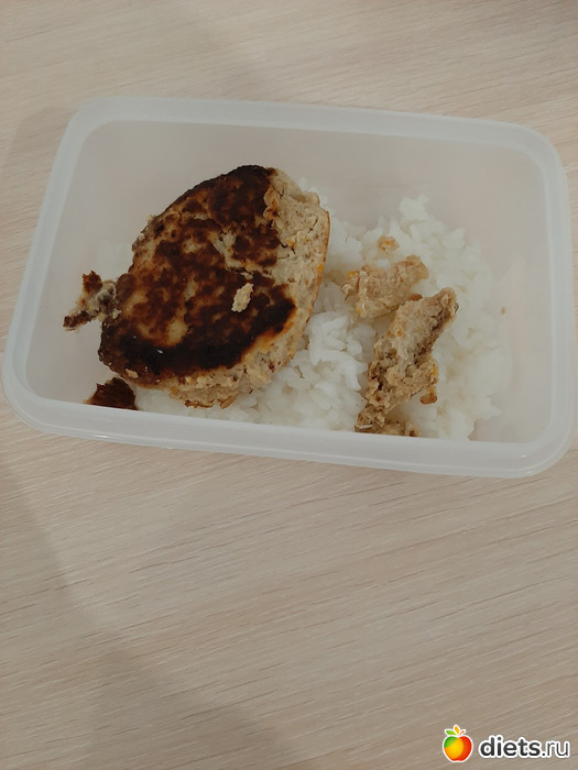 Мой ужин: рис (163 гр) с рыбной котлетой (95 гр) и черный чай без сахара.