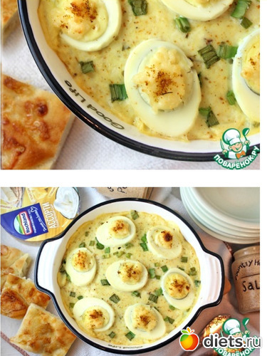 Не будем начинать полемику, что было раньше курица или яйцо, а просто согласимся, что яйцо в разных его проявлениях – идеальный вариант для перекуса, особенно для того, кому нужно много работать и двигаться. Например, вот яйца в сырном соусе. Яйцо и сыр созданы друг для друга, создавая вкусный тандем. Отведав этот перекус - заряд бодрости и хорошего настроения гарантирован. С хлебом, с овощами, вкусно! А готовить это блюдо очень просто и быстро!