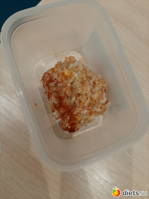 Мой обед: ёжик с рисом из свинины (148 гр) и вода.