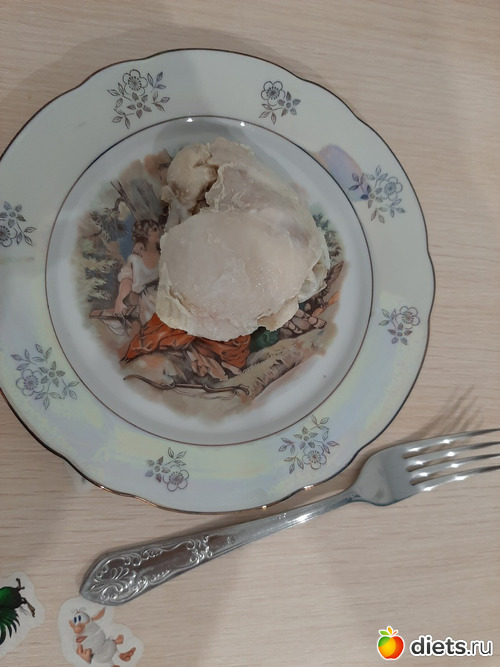 Второй ужин: (надо было доесть курицу последний день) куриное бедро без кожи (91 гр) и вода.