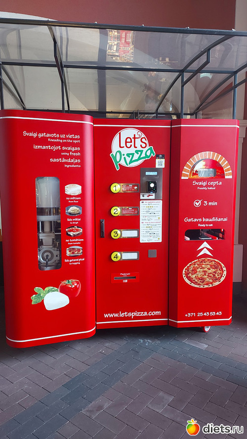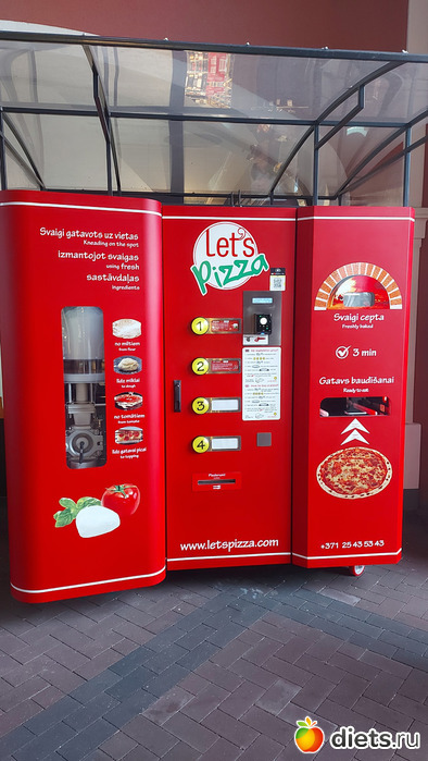 Далее проехали в аутлет. Мы уже были в нем в прошлом году. Аппарат, выдающий горячую пиццу за 3 минуты. Пиццу не брали, просто любопытный, ранее нигде не виденный