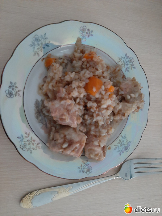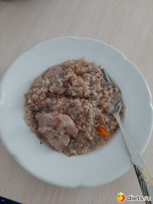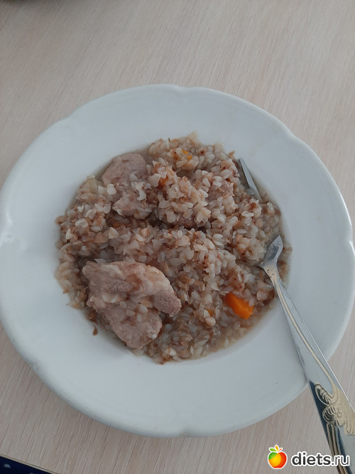 Мой ужин: гречка с мясом (235 гр) и вода.