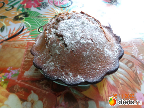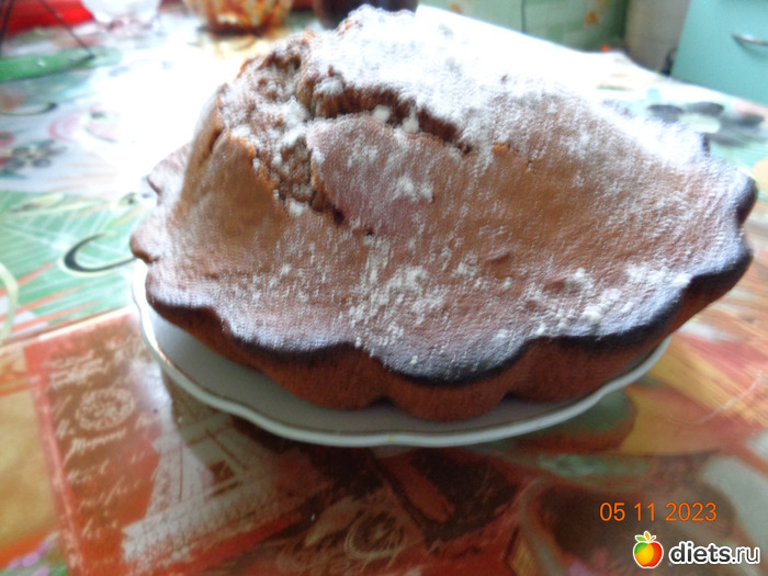 4. Тесто получается текучее, но не жидкое. Консистенция не очень густой сметаны. Вылить тесто в чашу МВ, разровнять. (чашу МВ можно смазать раст. маслом). Я выпекала в духовке.