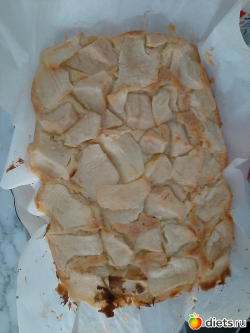 Мой ужин: манник с яблоками (119 гр) и черный чай без сахара.