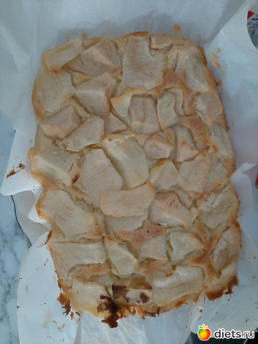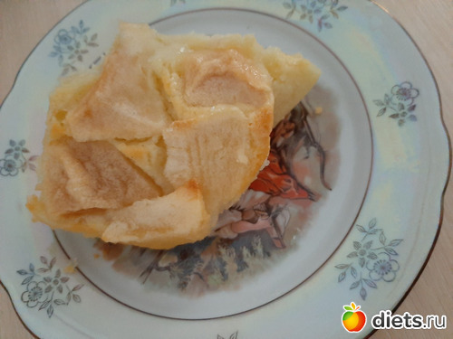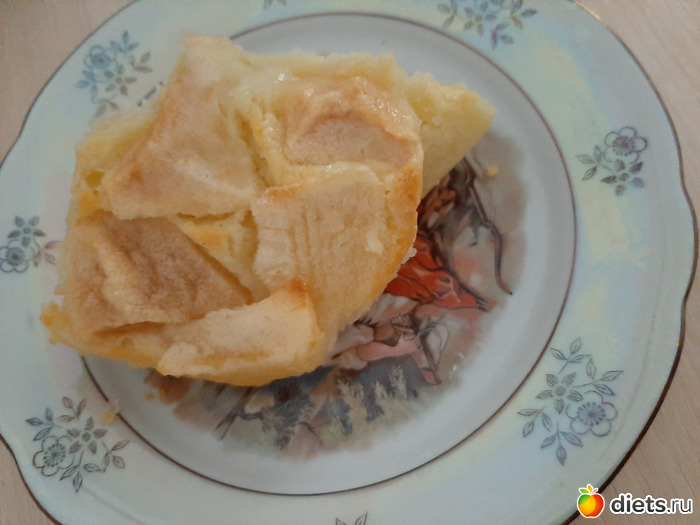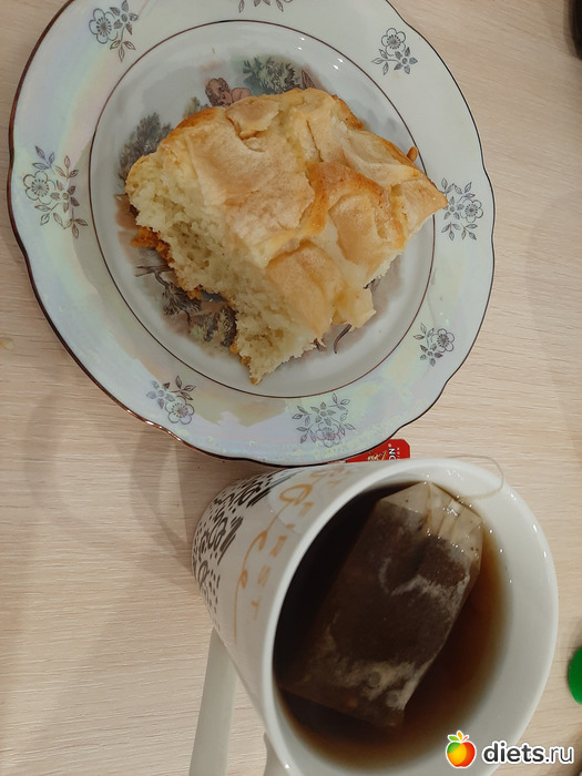 Мой ужин: манник с яблоками (119 гр) и черный чай без сахара.