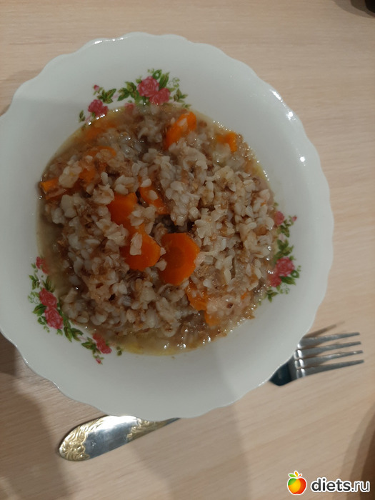 Мой ужин: гречка с мясом (325 гр), творожная запеканка (65 гр) и черный чай без сахара.