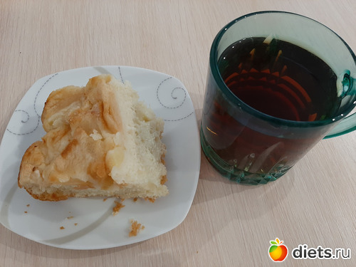 Мой завтрак: манник с яблоками (231 гр) и черный чай с 1 ложкой сахара.