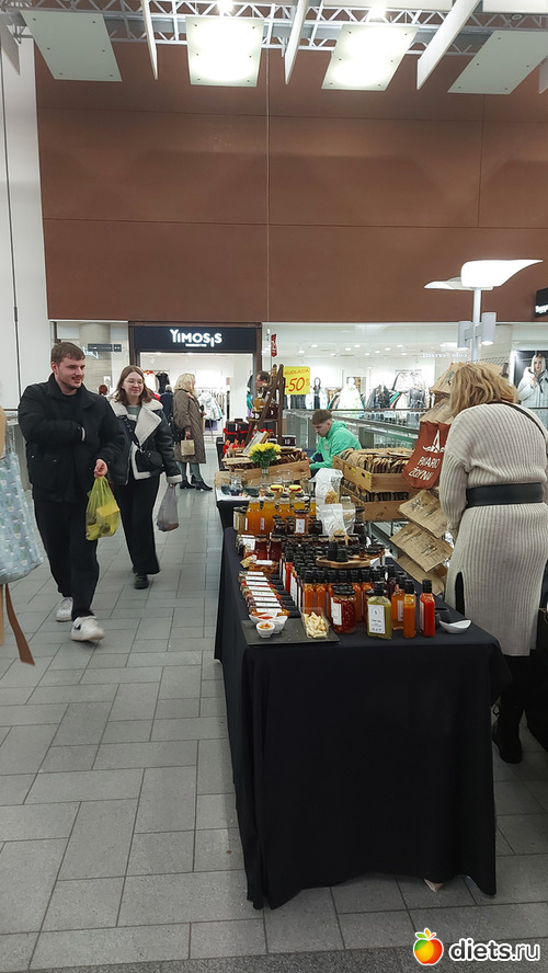 В первый тц муж поехал со старшими детьми. В конкретные часы обещали дегустацию пицц, десертов, кофе и фруктов. Они чуть опоздали на начало и застали только десерты.
