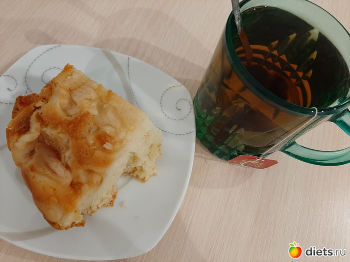 Мой завтрак: манник с яблоками (118 гр) и черный чай без сахара.