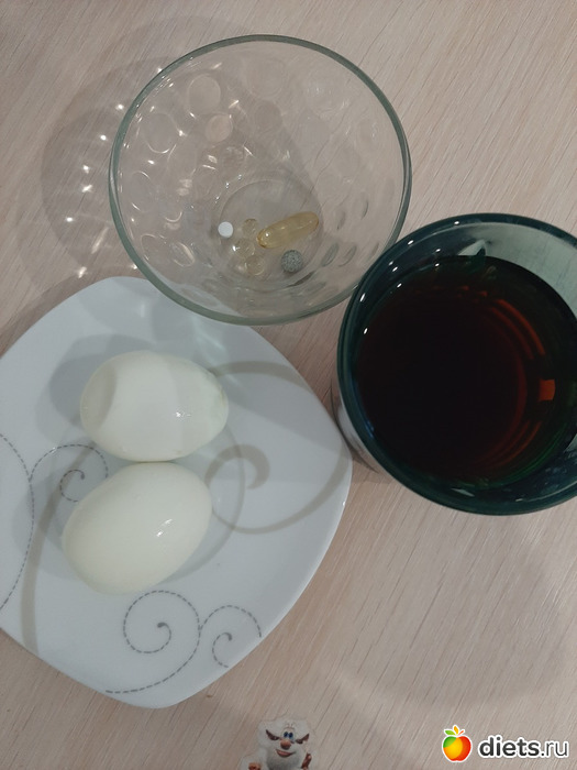 Мой завтрак: 2 вареных яйца и черный чай с 1 ложкой сахара.