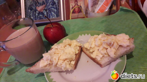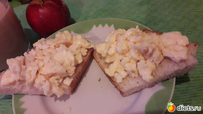 После показа Наташи, Кологривочки нашей и многочисленных реклам по ТВ-про желтые желтки и скрембл из них-муж решил осуществить такой завтрак!