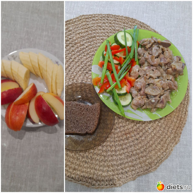Завтрак: Банан и яблоко.