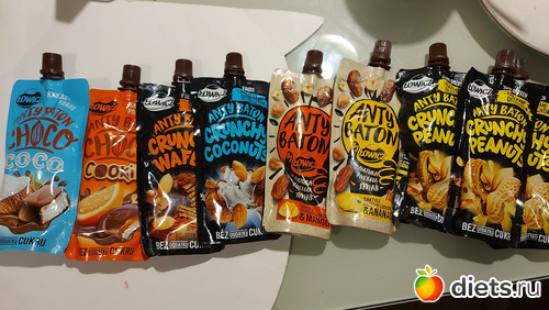 Эти батончики уже показывала, пострянно берем. Есть несколько видов, без сахара, от обычных батончиков типа сникерса не отличить