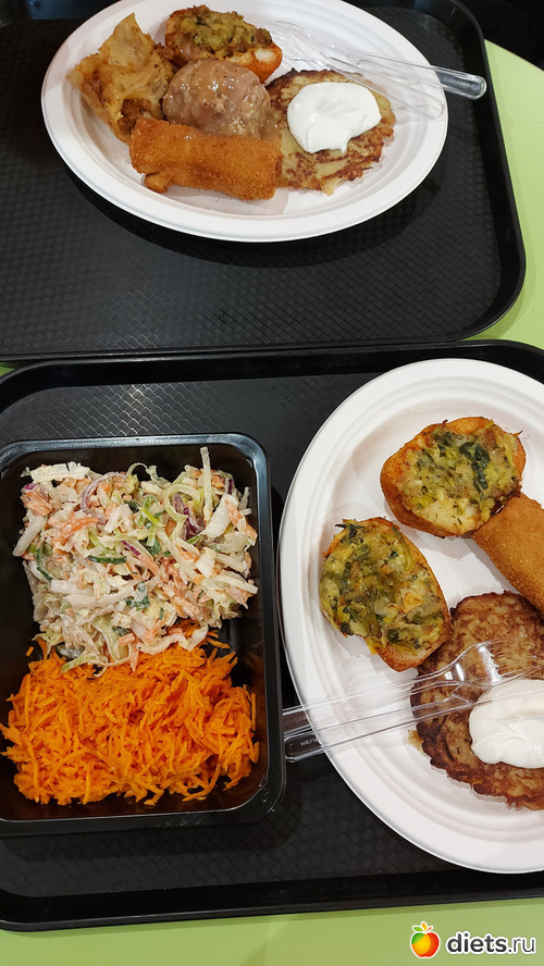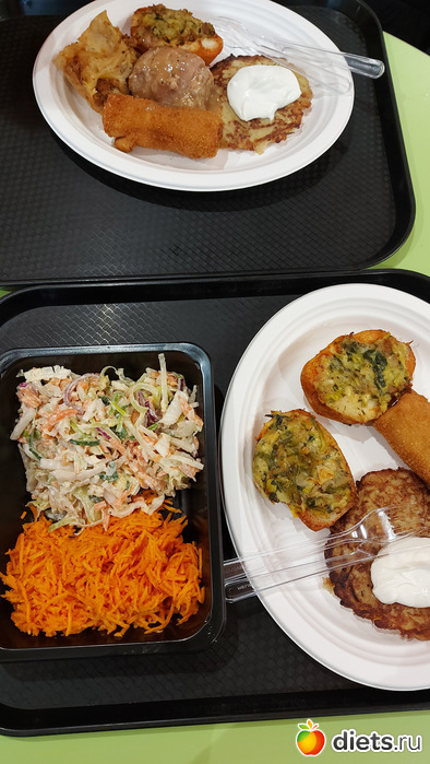 Пообедали в общепите, последние разы всегда в этом едим. Там еда на вес, фиксированная цена за 100 гр, все блюда одинаково. Муж такого набрал, пока я малышка из термоса кормила домашним привычным
