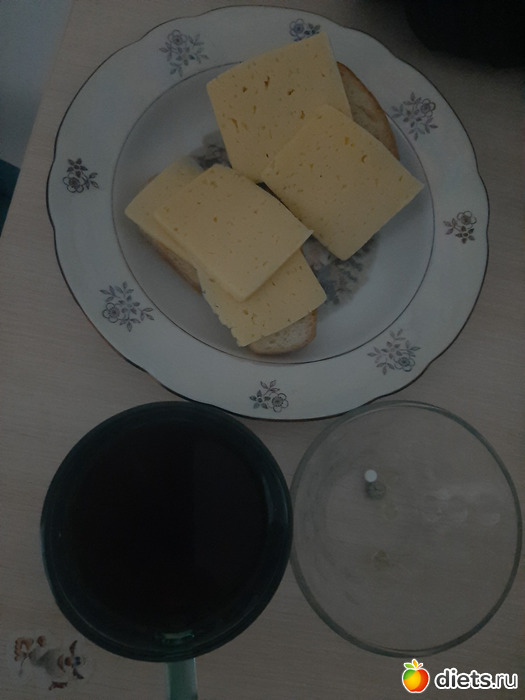 Мой завтрак: хлеб (41 гр) с сыром (70 гр) и черный чай с 1 ложкой сахара.