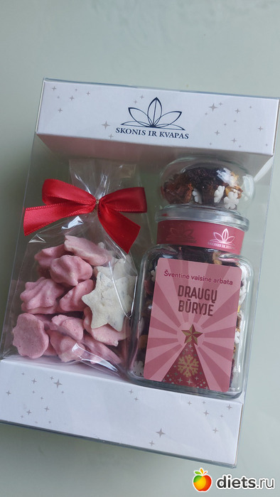 Маме набор чай+конфеты. Чай называется "В окружении подруг". К ней часто заходят подруги в гости, думаю, подойдет