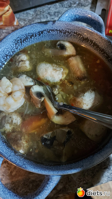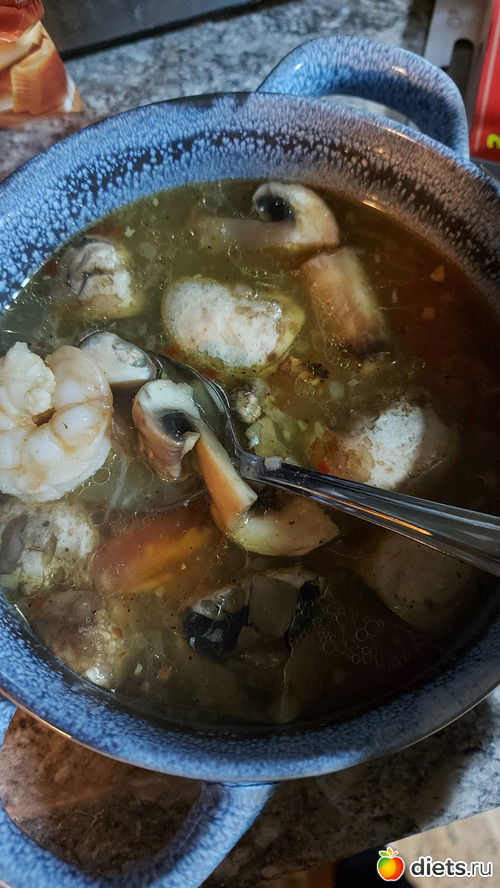 Том-кха с курогрудью, грибами, мидиями, креветками