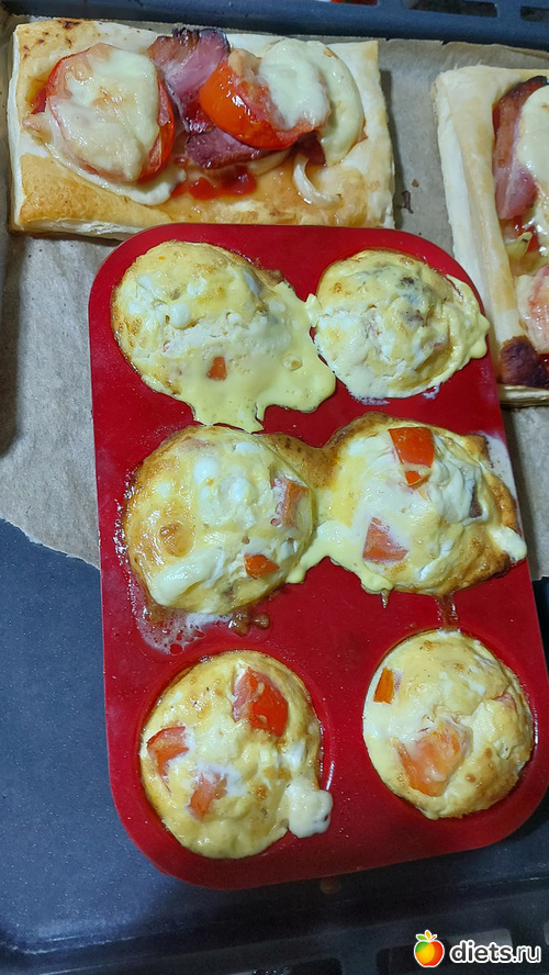 Себе - омлетные кексы, детям - мини пиццы из готового теста