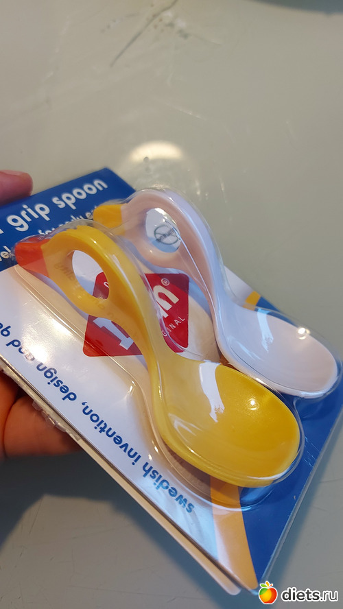 Малышу ложечки для обучения самостоятельного питания, очень у нас популярные. Скандинавская разработка. Они с года, но дали сейчас, и он сразу врубился, что с ними делать