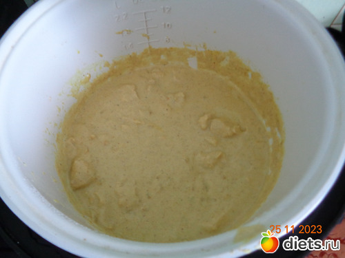 3. В чашу мультиварки налить масло и добавить муку. Затем добавить лук и обжарить до золотистого цвета.