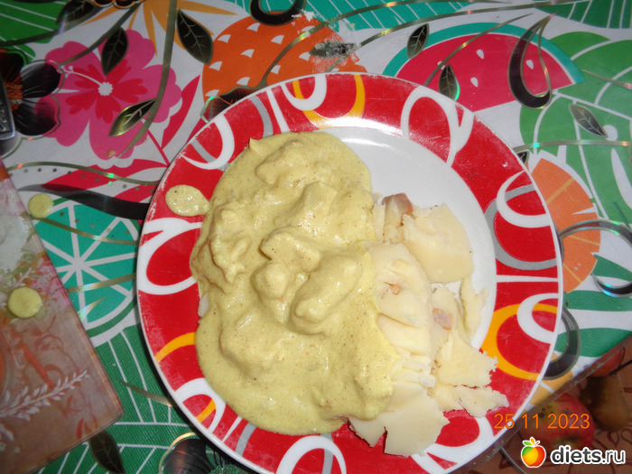 P.S. Блюдо получится диетическим, если курицу не обжаривать, а сразу добавить сливки и потушить.