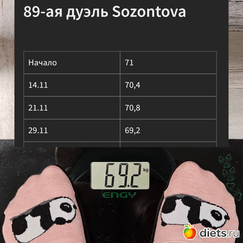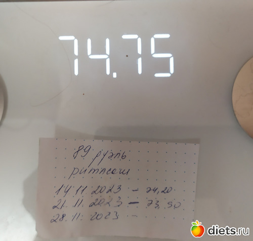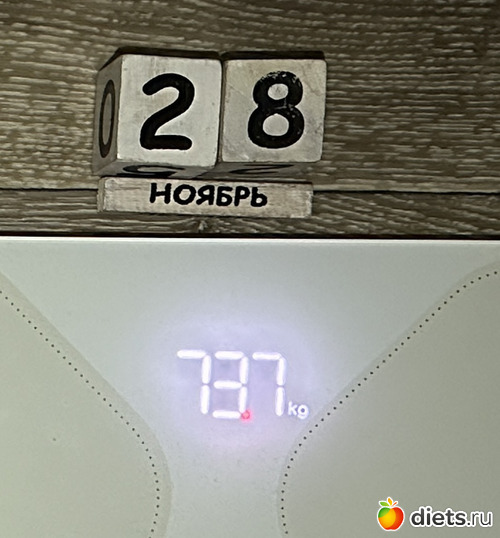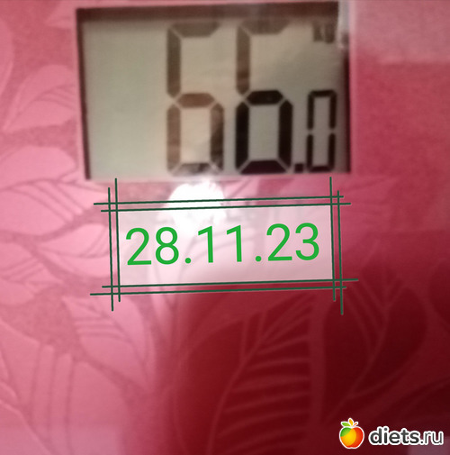 А я в пять утра налакалась отвара шиповника, закусывая киви, пока еда лезет, а потом только вспомнила, что сегодня вторник. Но на днях у меня весы показали 69,6